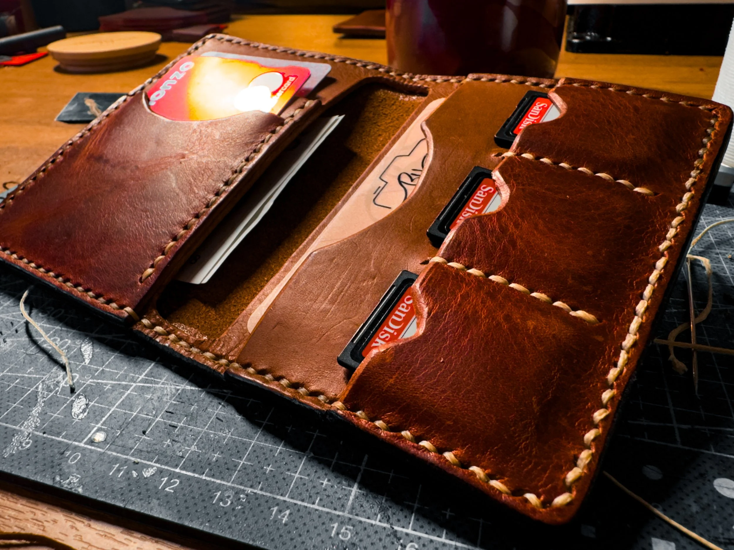 Built for life on the move, The Warden is a no-nonsense bifold wallet with enough grit to outlast your jeans. Hand-cut from full-grain leather, it’s stitched to take a beating and age like a legend. With two main card slots, two stash pockets, and a full-length cash slot, this is the wallet for those who carry lean but still want room for the chaos.